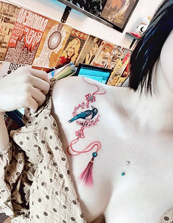 Xỏ khuyên dưới da giữa khe ngực và xương quai xanh (Hot Girl Tăng Thiên Kim)