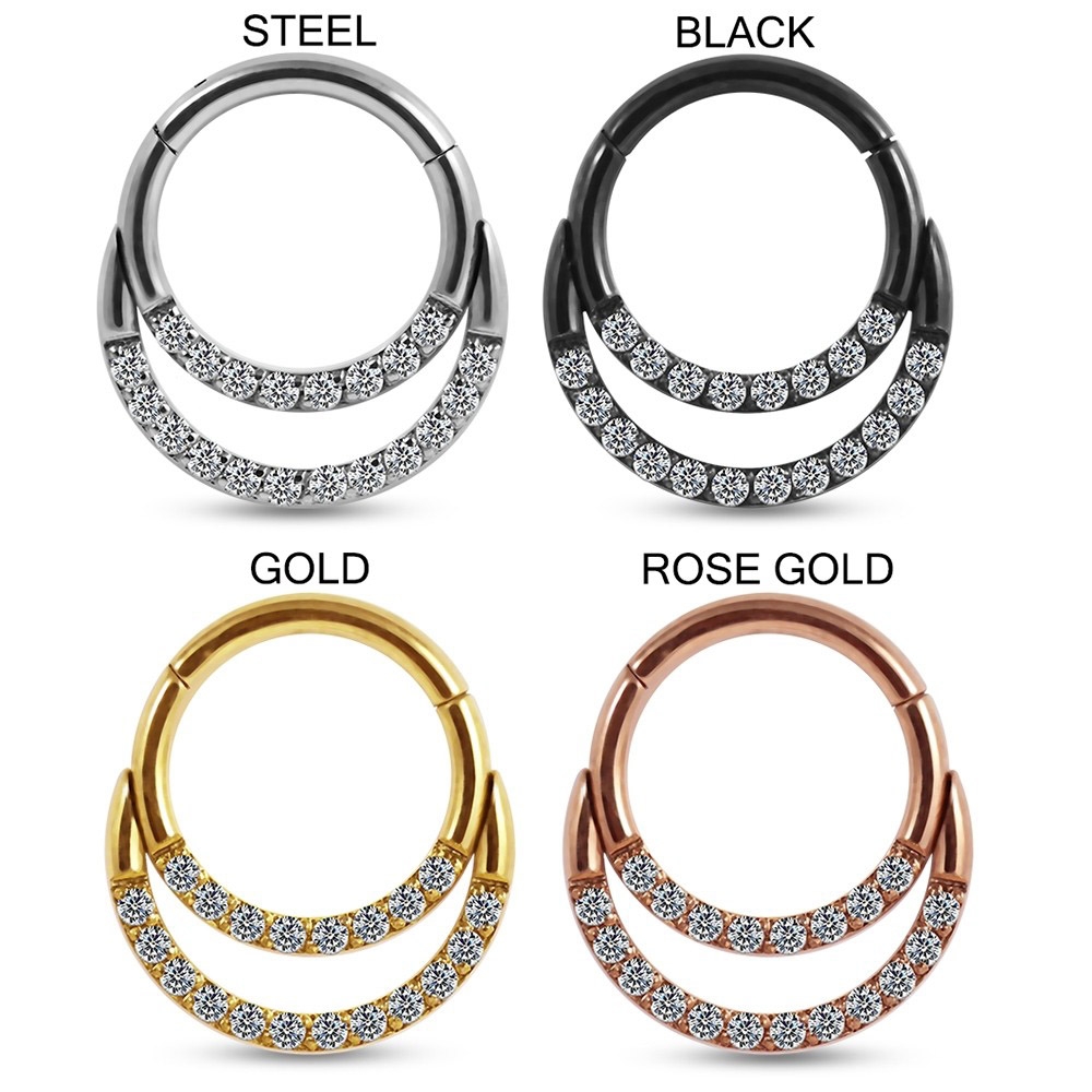 Chất liệu: Surgical Steel (Thép làm khuyên tốt nhất), Không gây kích ứng da, Đá thiên nhiên CZ