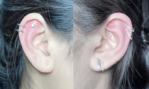 Xỏ khuyên vành tai hay còn có tên gọi khác là xỏ Helix thực sự là một lựa chọn hoàn hảo cho bạn nếu muốn vượt lên trên một chút so với xỏ phần mềm tai truyền thống. Ở vị trí vành tai bạn có thể chọn cho mình một chiếc khuyên vòng ôm sát, hay vài chiếc khuyên ôm sát song song với nhau. Ồ bạn hãy tưởng tượng thử xem, trên tai mình là vài chiếc khuyên ôm sát vành như vậy, thật sự quá đẹp, quá bắt mắt đúng không nào.